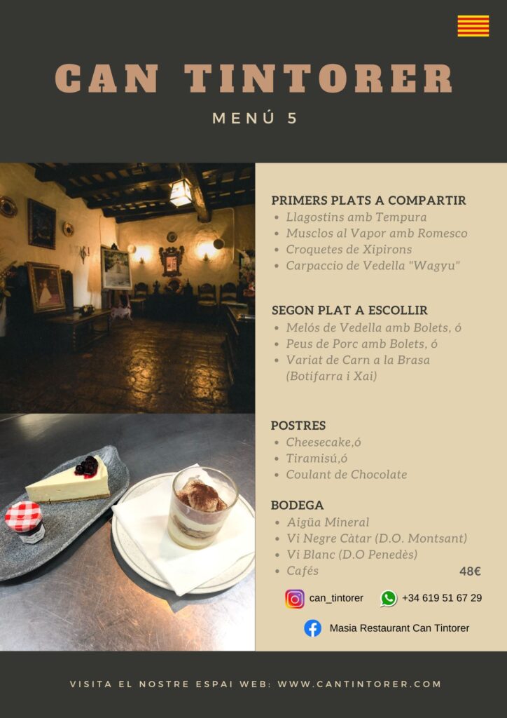 A Can Tintorer t’oferim menús especials pensats per gaudir en companyia. Ja sigui una celebració familiar, un àpat amb amics o un dinar d’empresa, els nostres menús de grup estan dissenyats per compartir bons moments al voltant de la taula.